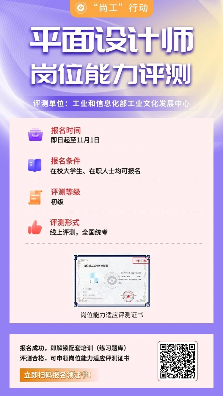 平面设计师岗位能力适应评测证书 || 考试时间:2025年11月1日;发证单位:工业和信息化部工业文化发展中心 || 掌握了从事相关岗位工作所需专业知识的证 .. ...