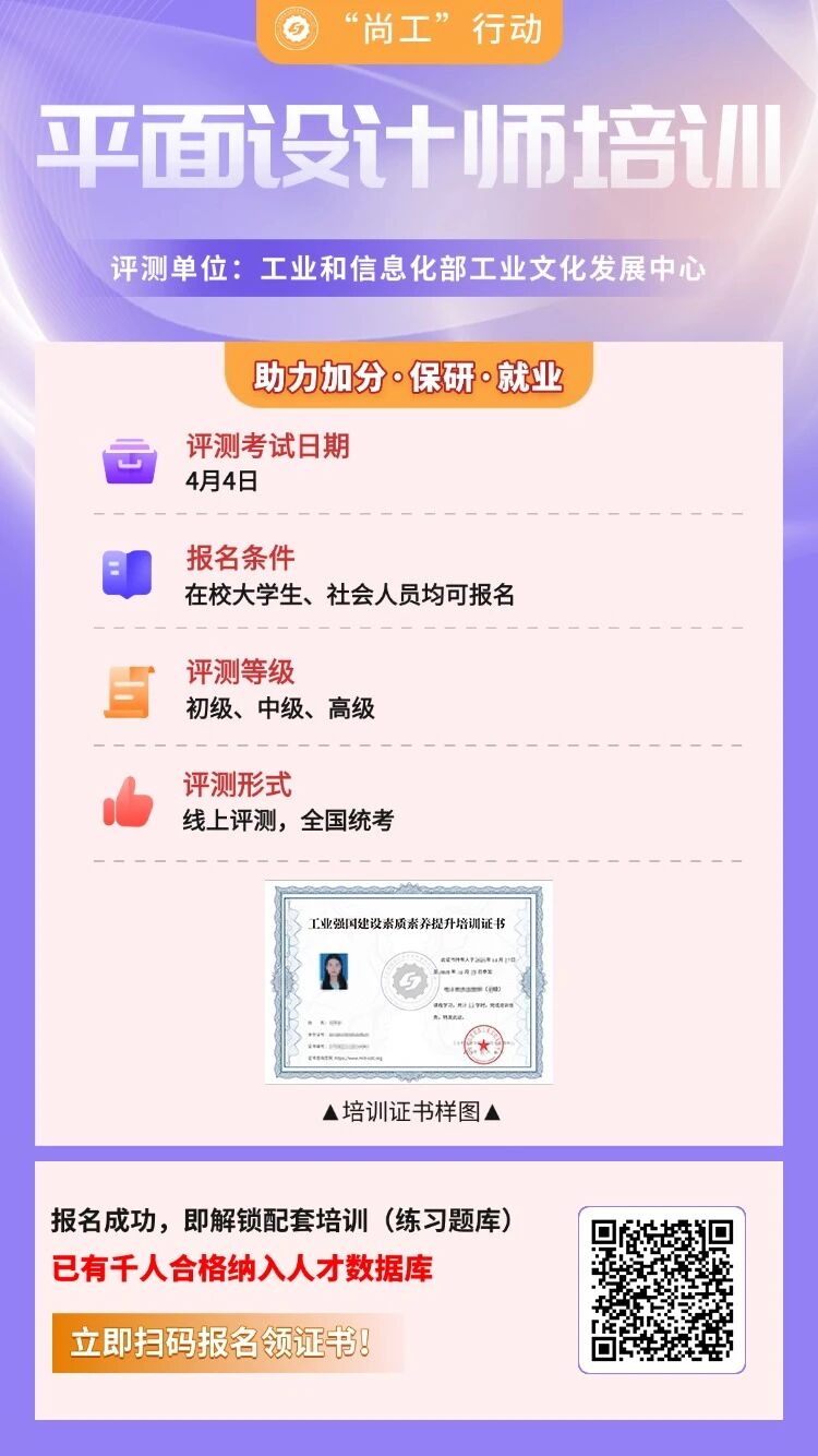 平面设计师岗位能力适应评测证书 || 考试时间:2026年4月4日;发证单位:工业和信息化部工业文化发展中心 || 掌握了从事相关岗位工作所需专业知识的证 .. ...