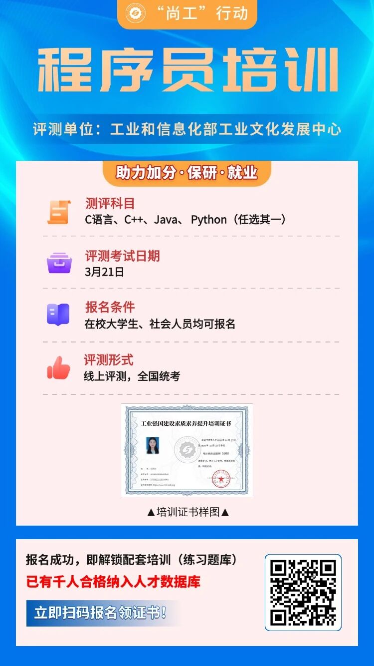 【程序员证书】工信部工业文化发展中心主办,在校生即可报名,线上考试有题库! || 考试时间:2026年3月21日 || 主办:工信部工业文化发展中心