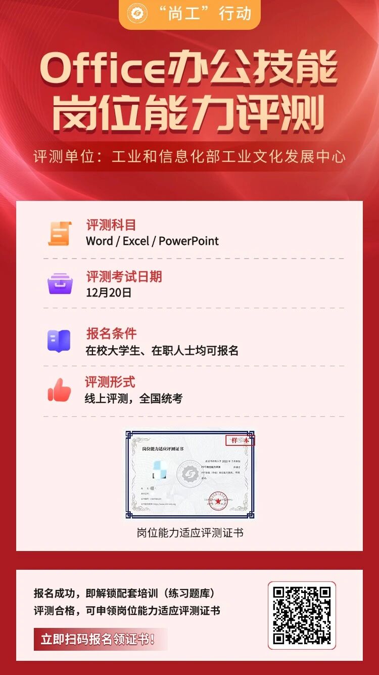 岗位能力适应评测证书是持证者参加培训或通过知识评测、掌握了从事相关岗位工作所需专业知识的证明,可作为用人单位招聘的重要参考指标。具有以下价值:
