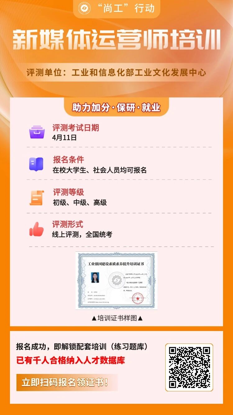 【新媒体运营师证书】适合大学生,报名即刻解锁课程题库