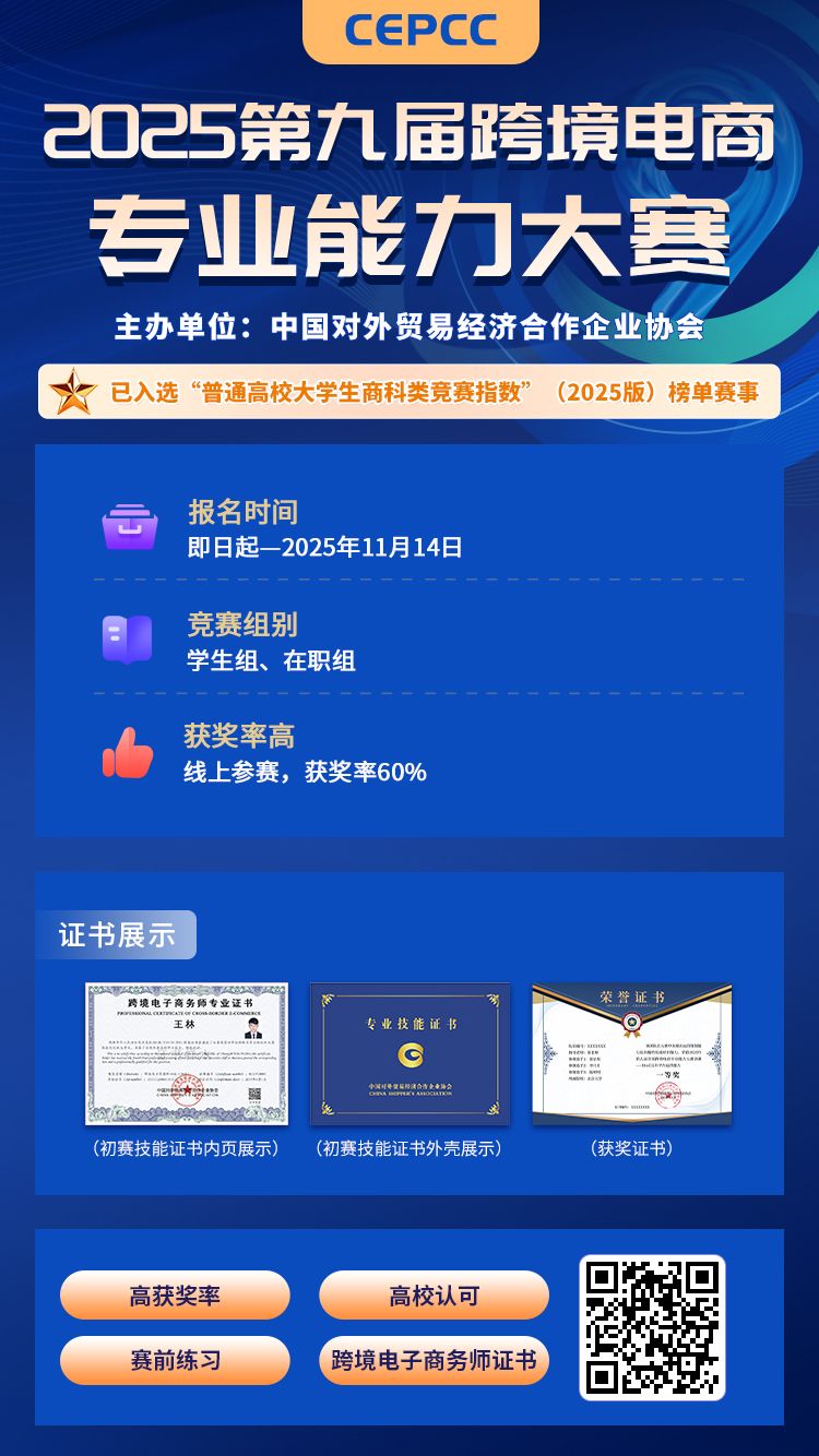 2025年度第九届跨境电商专业能力大赛 || 报名时间即日起-2025年11月14日;主办单位:中国对外贸易经济合作企业协会
