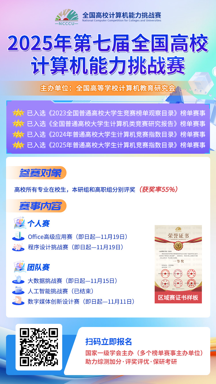 【Office高级应用赛】2025年第七届全国高校计算机能力挑战赛 || 报名时间:即日起-2025年11月19日;主办单位:全国高等学校计算机教育研究会