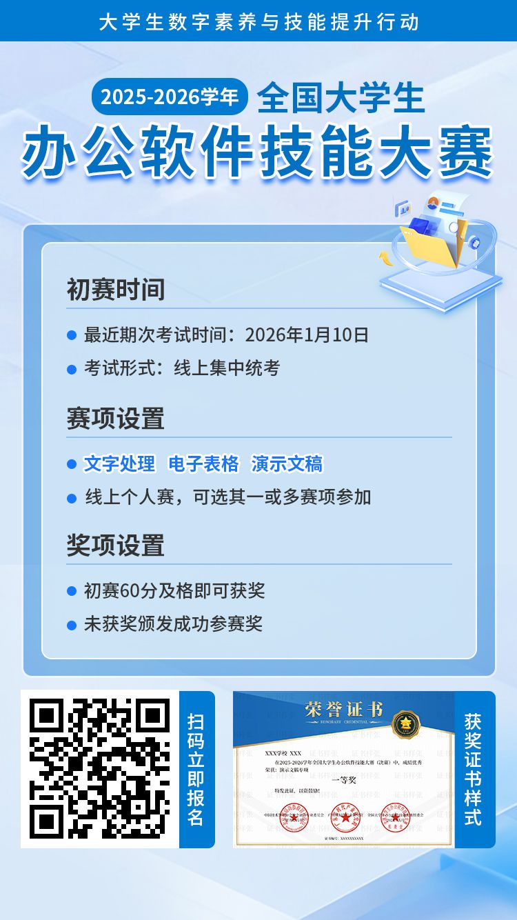 2025-2026学年全国大学生办公软件技能大赛||第二批次报名截止时间:2026年1月10日||主办单位:中国技术创业协会校企融合专业委员会、广东省时代产业研究院