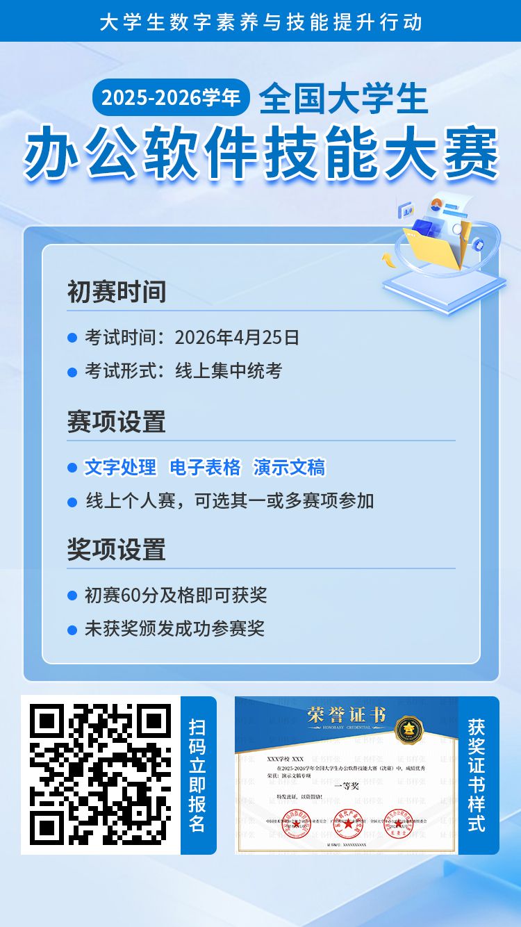 2025-2026学年全国大学生办公软件技能大赛||最近批次报名截止时间:2026年4月25日||主办单位:中国技术创业协会校企融合专业委员会、广东省时代产业研究院