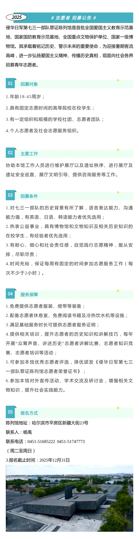 侵华日军第七三一部队罪证陈列馆2025年冰雪季志愿者招募
