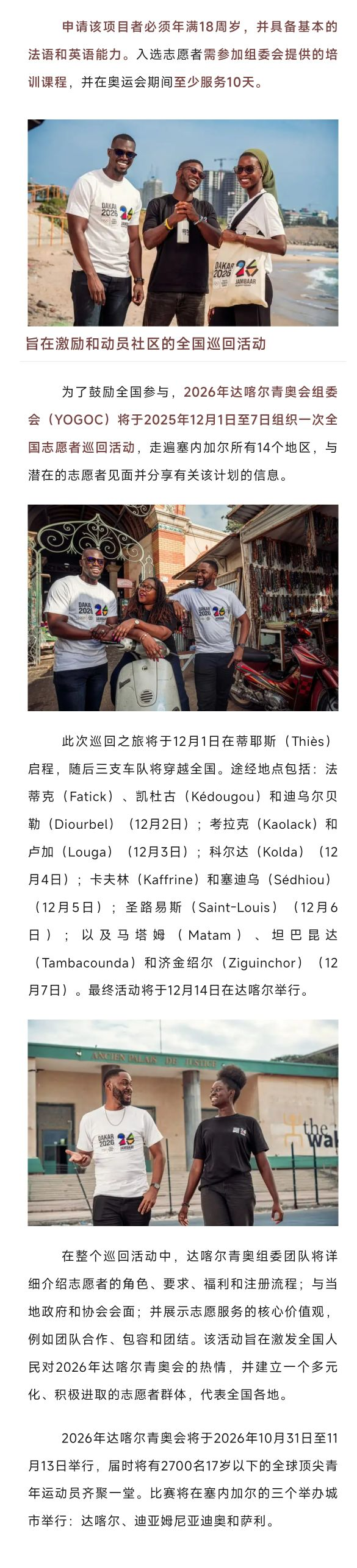 2026年达喀尔青奥会志愿者招募工作启动