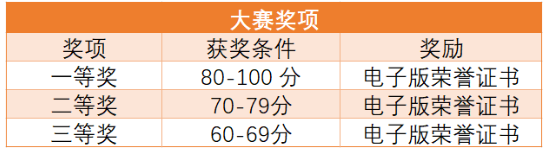 比赛设“优秀指导教师奖”。组织报名且成功完成比赛的学生人数达到50人及以上的教师,将被授予“优秀指导教师”,颁发纸质版证书。