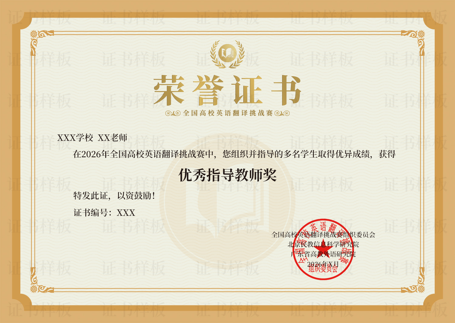 在报名时填写了指导教师且最终获奖的参赛者将同时获得两份证书,获奖者本人+指导老师。