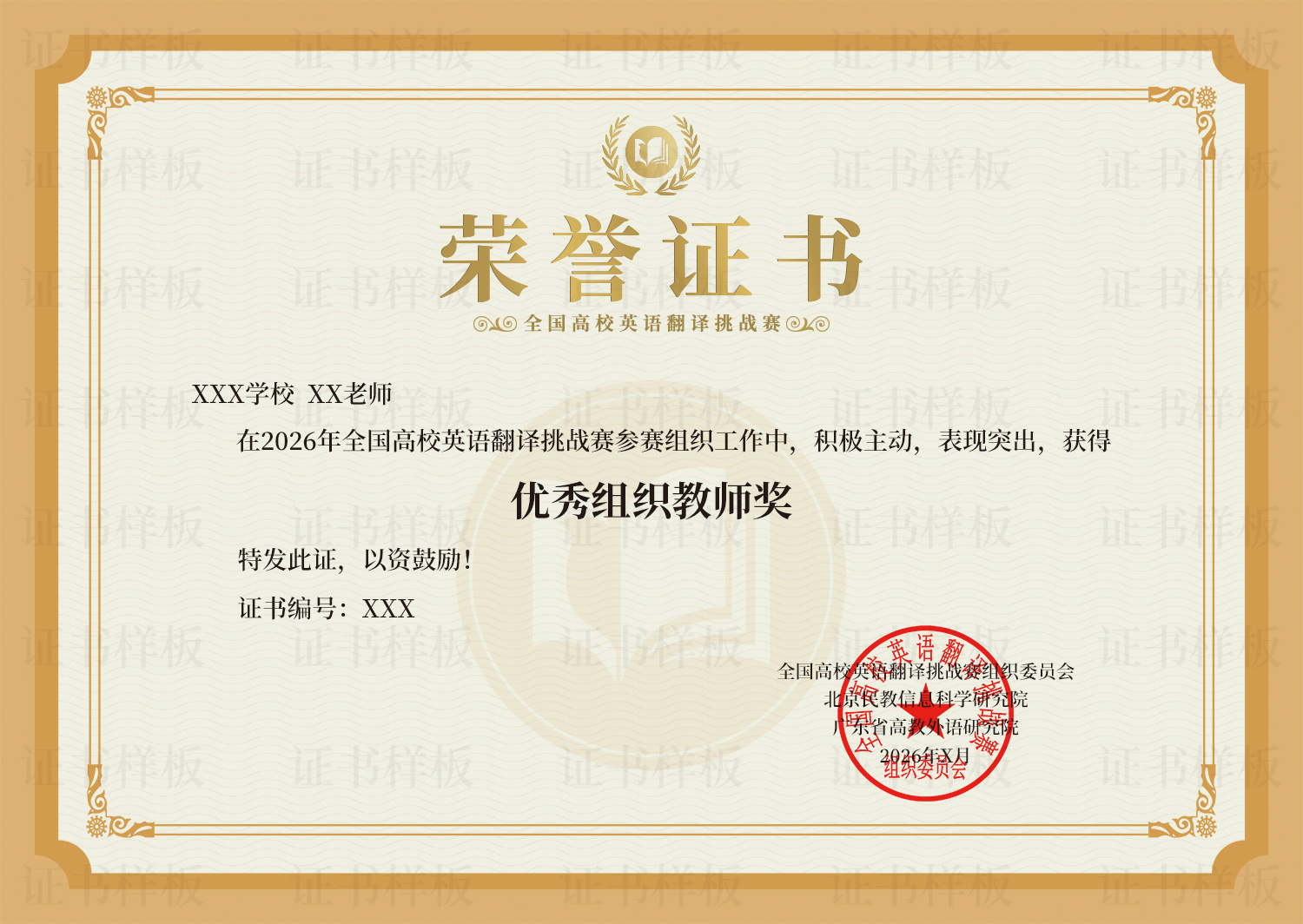 第一期报名截止时间:2026年5月15日||主办单位:全国高校英语翻译挑战赛组织委员会、北京民教信息科学研究院、广东省高教外语研究院