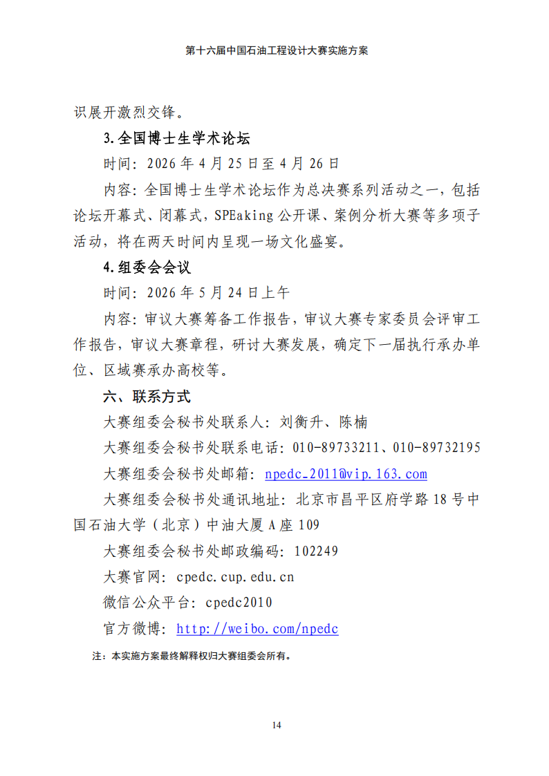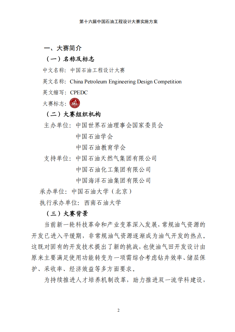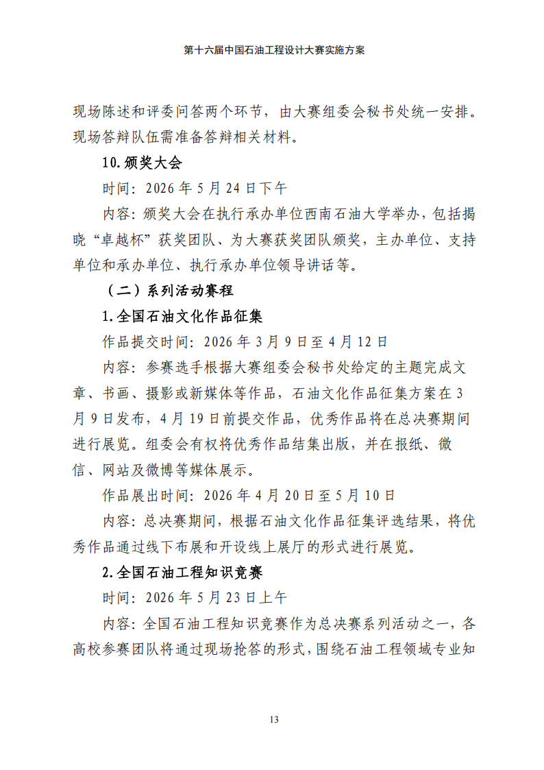 第十六届中国石油工程设计大赛实施方案