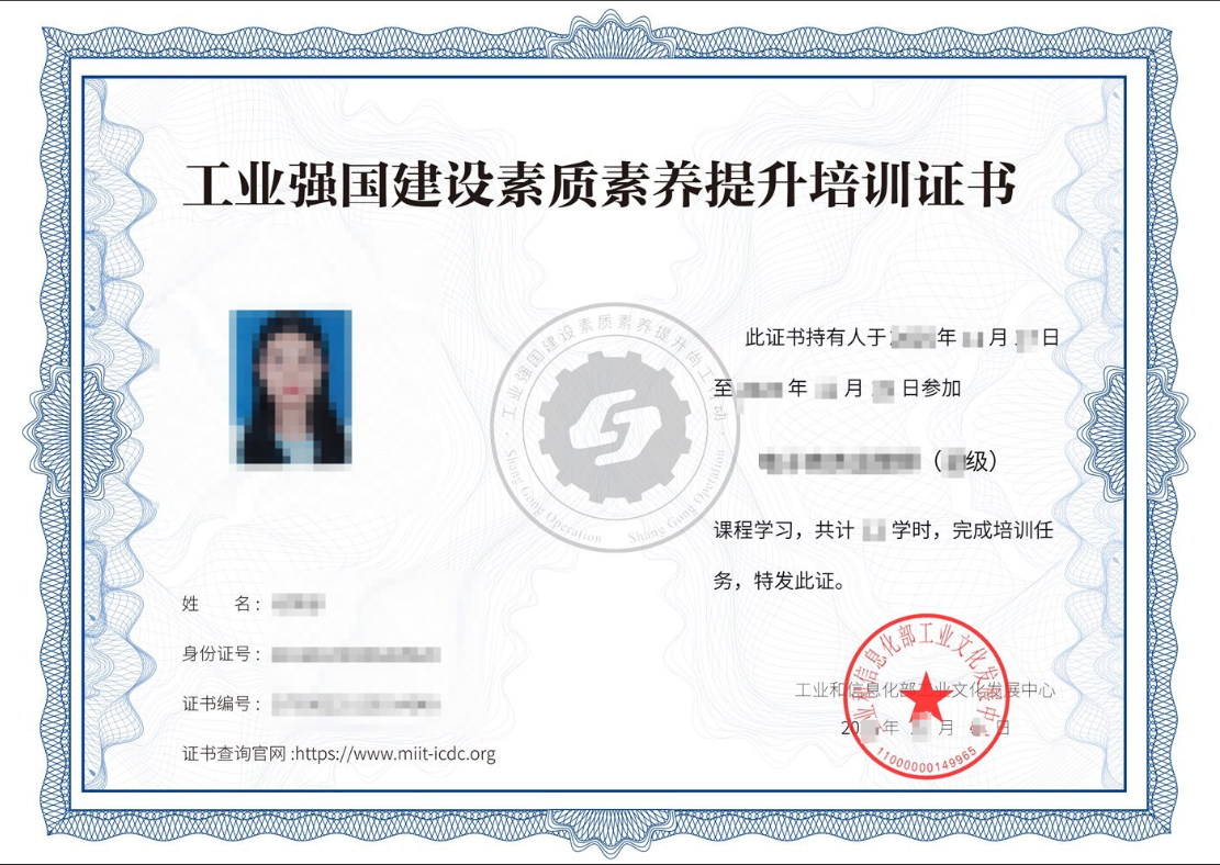 通过考核的学员,可获得由工信部工业文化发展中心颁发的培训证书,证明持证人有相关培训经历或具备适应相关岗位的能力,帮助学员提升职业发展空间,并在推荐就业、持续培训等方面优先考虑。