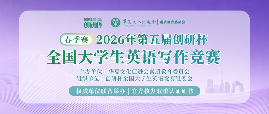2026年第五届创研杯全国大学生英语写作竞赛||主办单位:华夏文化促进会素质教育委员会||报名时间:2026年7月17日中午12点截止