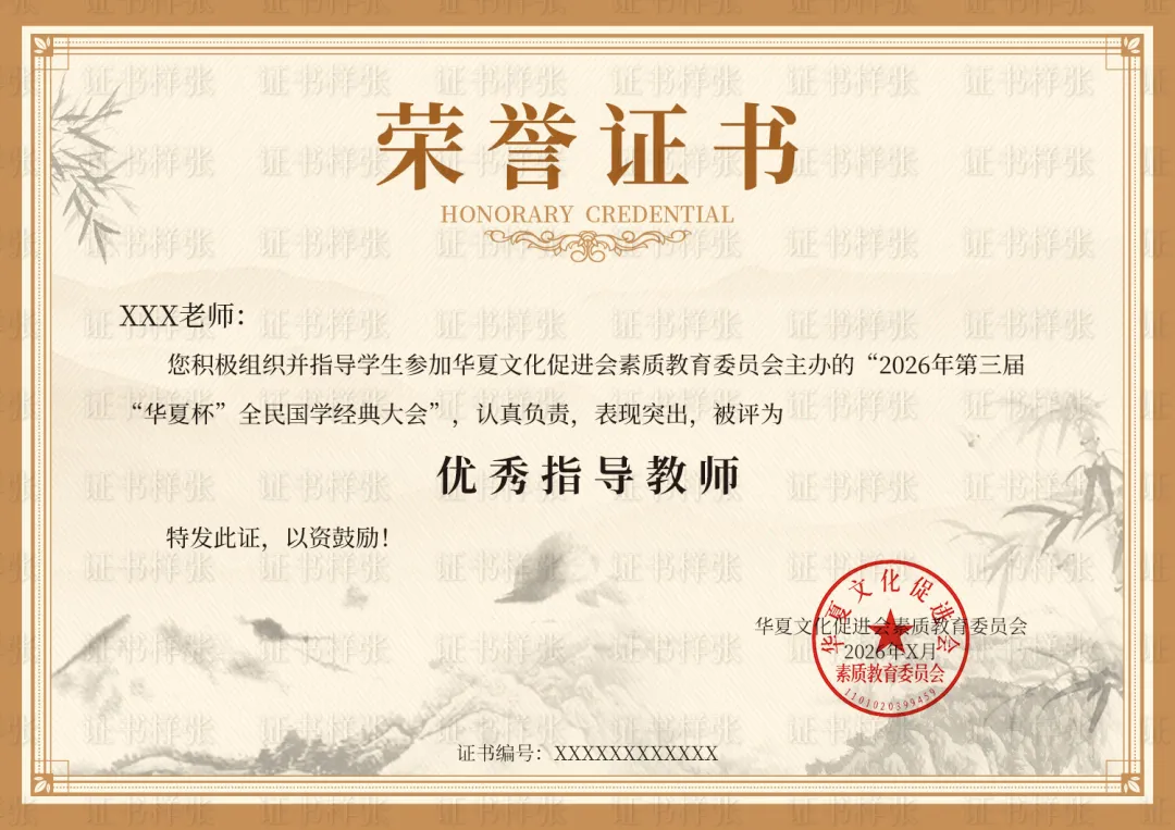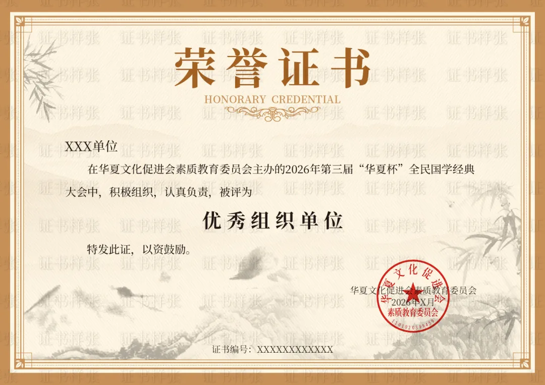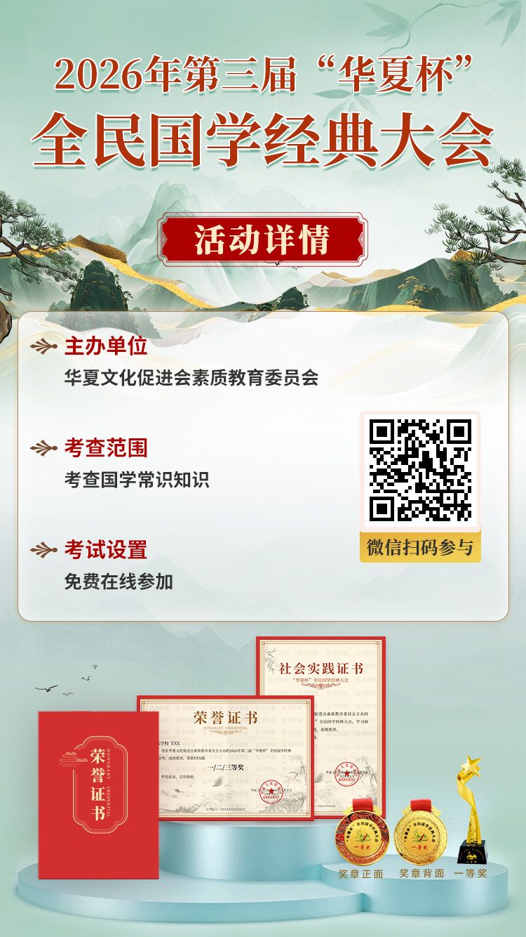 2026年第三届“华夏杯”全民国学经典大会||主办单位:华夏文化促进会素质教育委员会||参与时间:2026年4月2日至12月31日