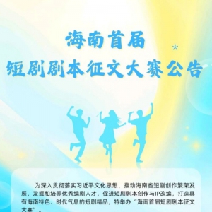 海南首届短剧剧本征文大赛;主办单位:海南AIGC影视文创联盟剧创中心、三亚市数字经济产业园运营管理有限公司、三亚市作家协会;征稿截止时间:2025年12月10日