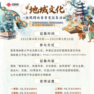 地域文化-短视频内容有奖征集活动大赛官网:https://unistore.10155.com/#/index征集对象本次大赛面向海纳星火平台的注册创作者开放,无论你是经验丰富的视频达人,还是初出茅庐的创作新秀,只要你有想法、有创意, ...